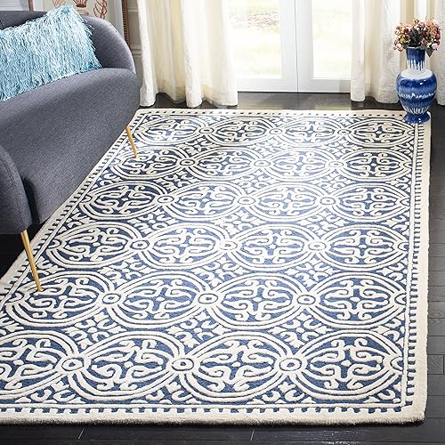 Navy Trellis Rug 100 Wool Navy White Area Rug